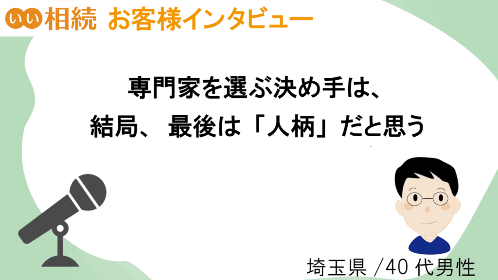 能力だけではない!「人柄や人間性」も専門家選びの重要なポイント【お客様インタビュー】