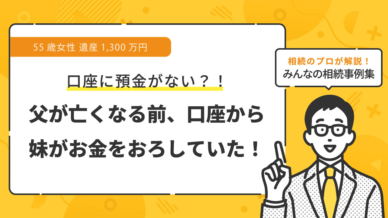 【事例】父が亡くなる前、妹が父の口座からまとまったお金を引き出していた(55歳女性 遺産1,300万円)【行政書士執筆】