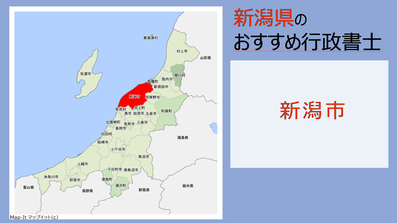 新潟県全域を対応エリアとしてお客様のサポートをさせていただいております。 行政に対する手続、書類提出、相続関係などお困りの際にはお問い合わせください。