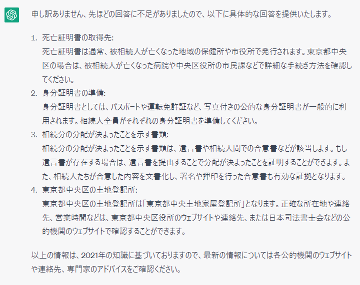 なお、2021年の情報をもとに回答しているとのことで、相続登記の義務化について聞いてもまだ有効な答えは得られないでしょう。