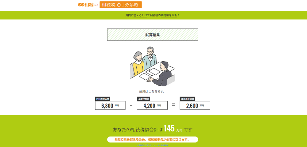 大人気!1分診断で自分に必要な相続手続きや対策、相続税の目安がわかる!