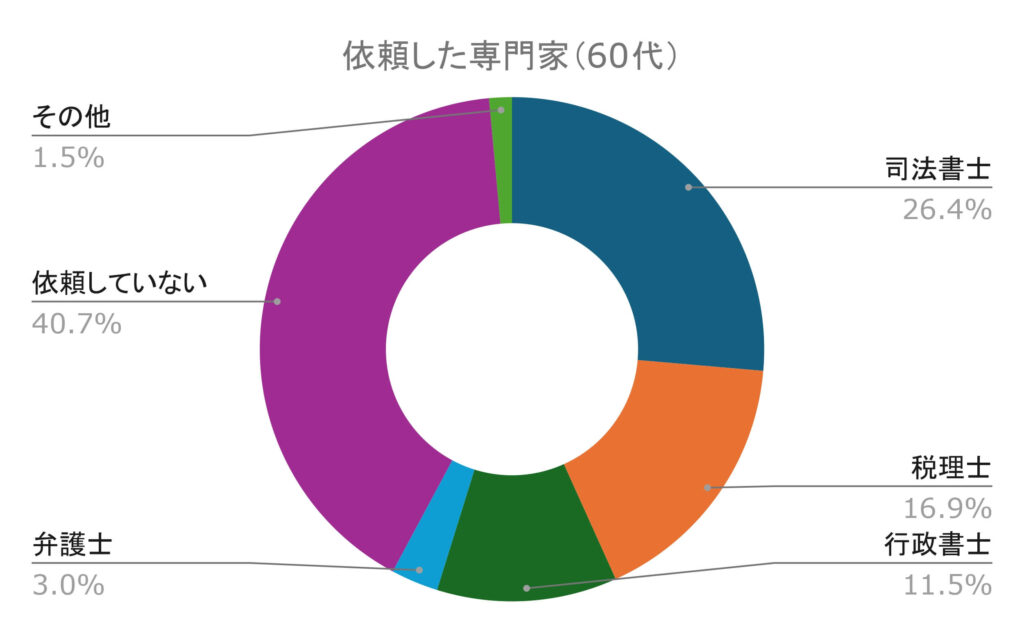 その一方、専門家に依頼していない割合は40.70%でした。したがって約6割が専門家に相続手続きを依頼したと言えます。