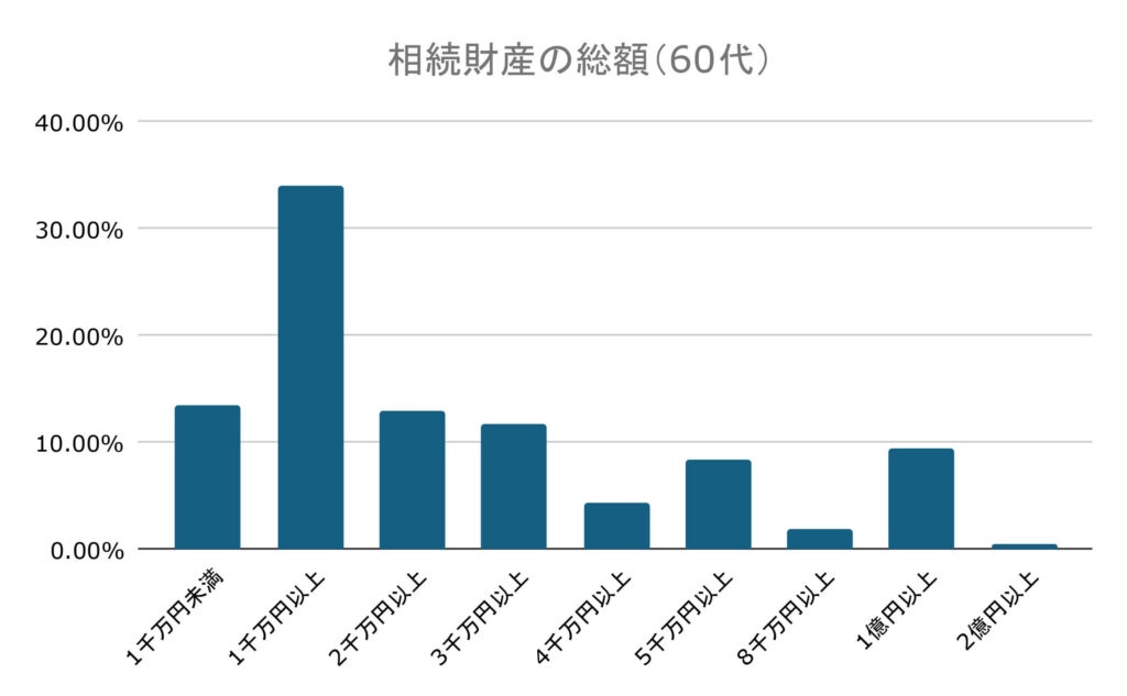 60代の相続では相続財産の総額が1,000万円以上が最多で、33.93%となりました。