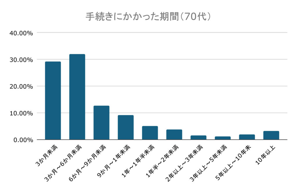 その一方、1年~1年半未満が5.00%、1年半~2年未満が3.75%、2年以上~3年未満が1.50%と、少数ではあるものの手続きが長期間にわたる場合も見られます。