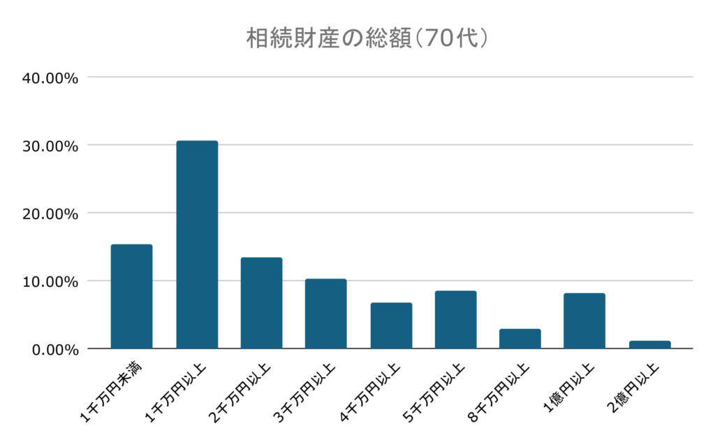 70代の相続では相続財産の総額が1,000万円以上が最多で、30.67%となりました。
