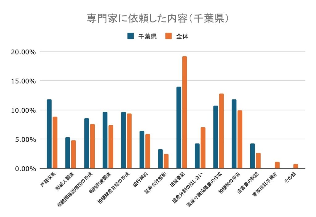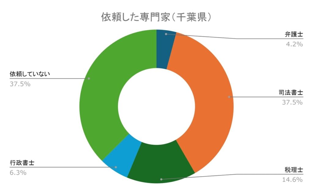その一方、専門家に依頼していない割合は37.50%でした。したがって千葉県の62.50%が専門家に相続手続きを依頼したと言えます。