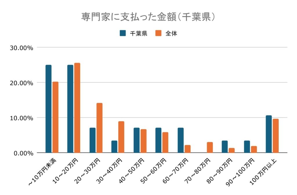 - 専門家に支払った金額は20万円未満に収まる割合が半数