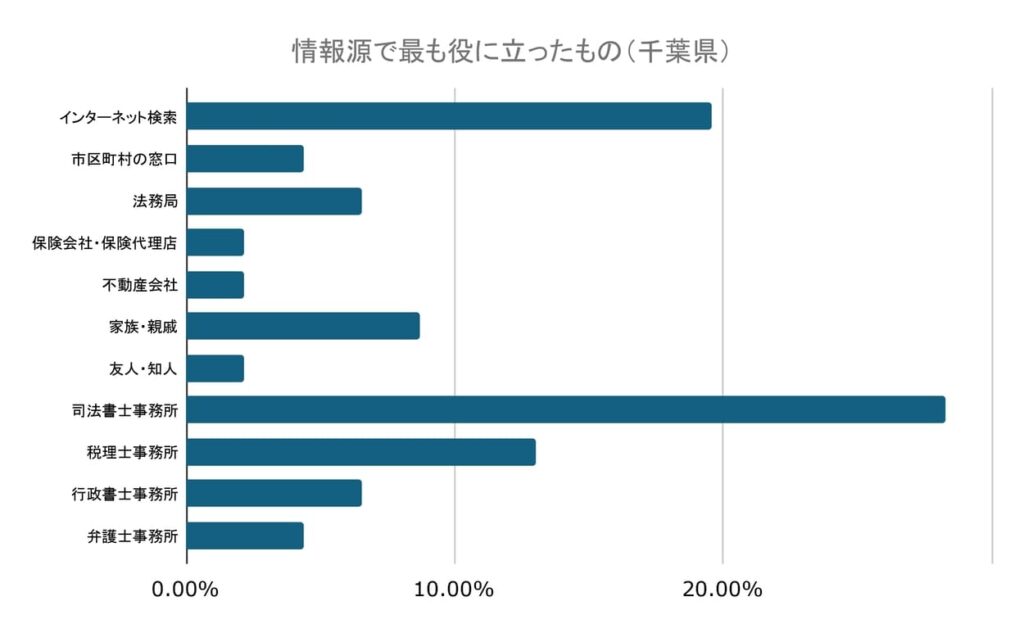 今回は千葉県の相続について解説しました。情報収集で最も役に立ったものの割合は圧倒的に司法書士事務所が高いものの、インターネット検索を役に立ったという人も多いことがわかりました。
