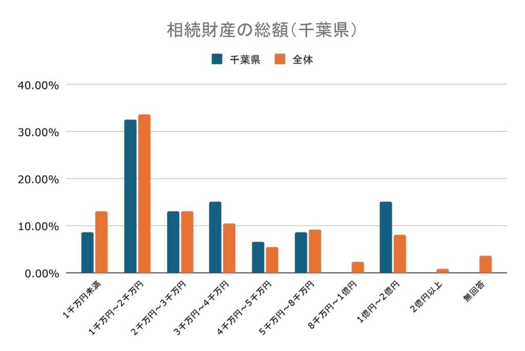 千葉県に住む人の相続では相続財産の総額が1,000万円以上~2,000万円未満が最多で、32.61%となりました。