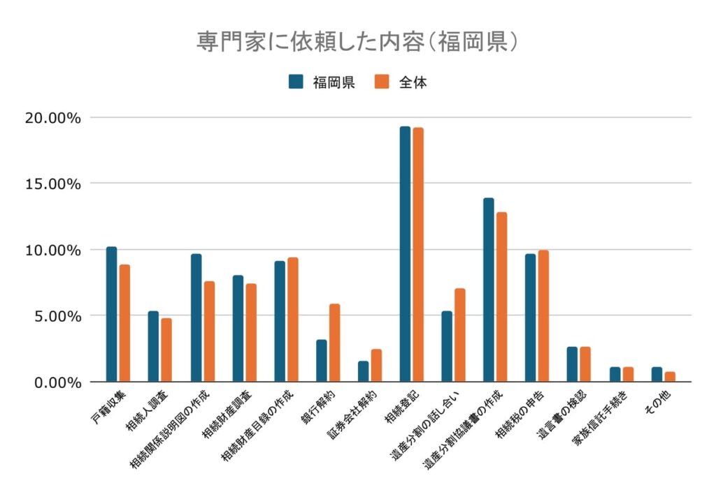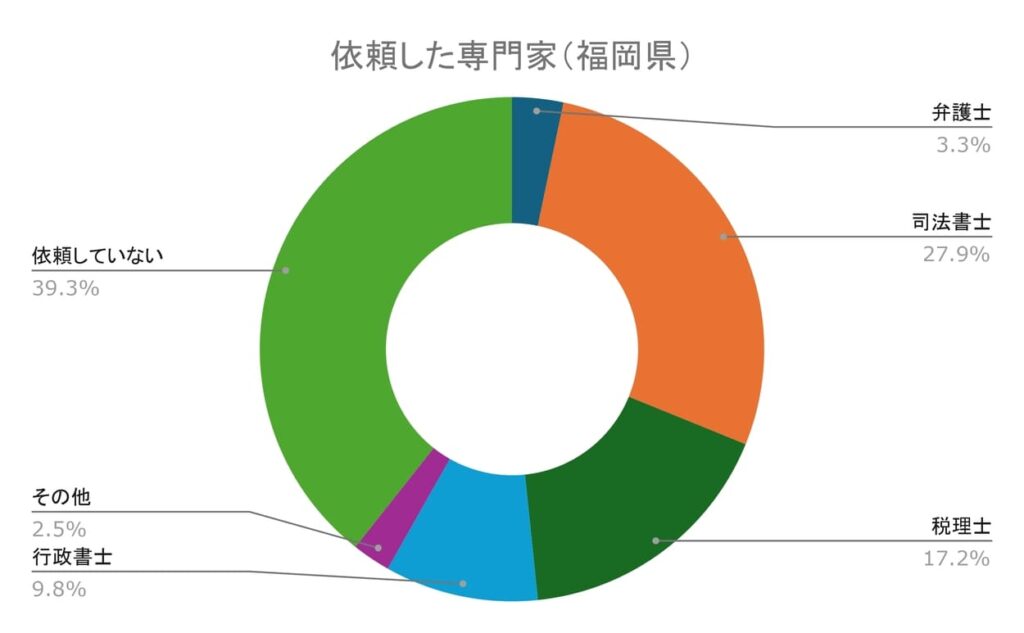 その一方、専門家に依頼していない割合は39.34%でした。したがって福岡県の6割程が専門家に相続手続きを依頼したと言えます。