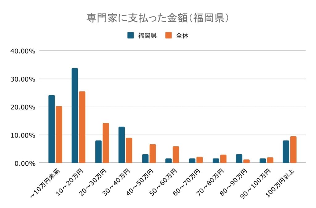専門家に支払った金額のアンケートでは、~10万円未満が最も多く33.87%でした。