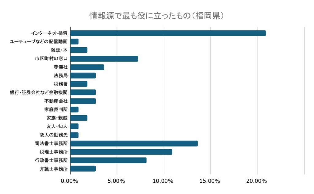 相続手続きに関する情報収集でもっとも役に立ったものとしては、インターネット検索が最も多く20.91%でした。