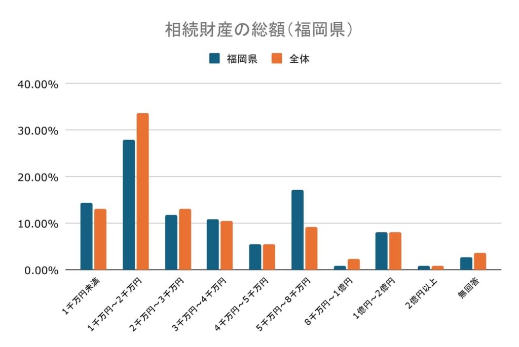 - 福岡県に住む人の相続財産の総額は5,000万円以上~8,000万円未満の割合が他より8%ほど高い
