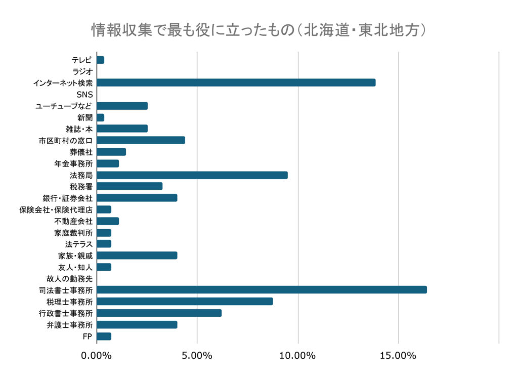 相続手続きに関する情報収集でもっとも役に立ったものとしては、司法書士事務所が最も多く16.42%でした。