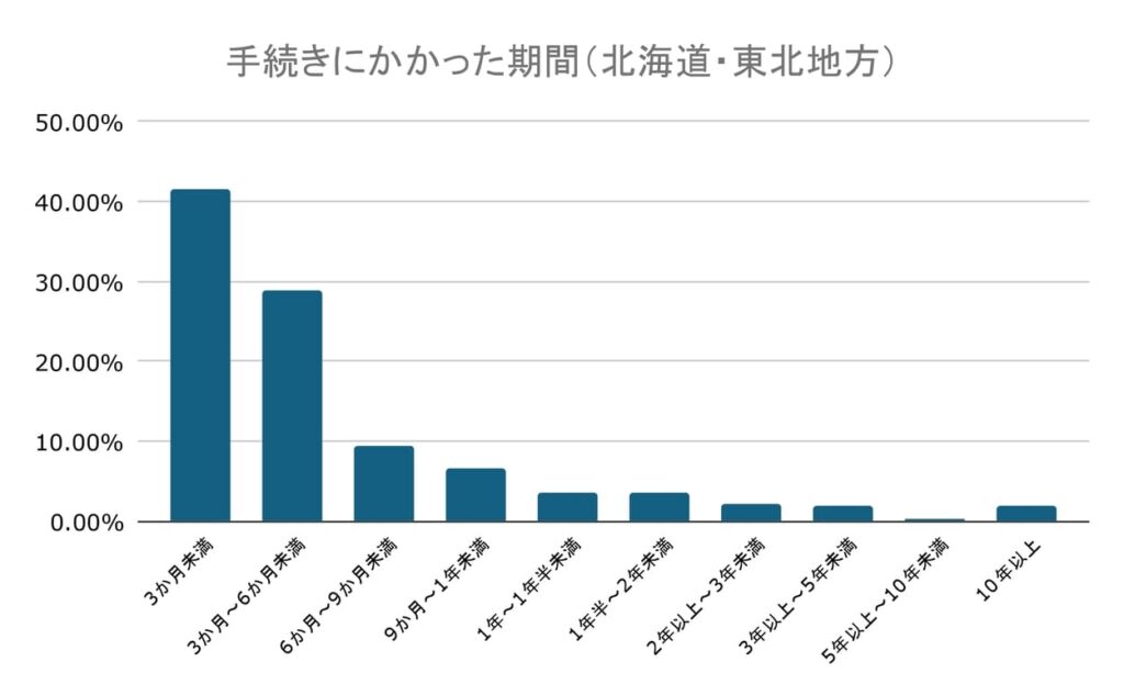 5年以上~10年未満が0.36%、10年以上が1.82%と、5年以上手続きがかかる場合はまれです。