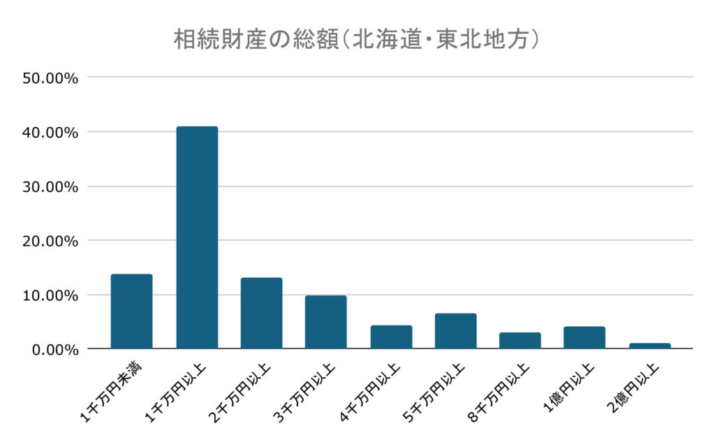 北海道・東北に住む人の相続では相続財産の総額が1,000万円以上~2,000万円未満が最多で、41.09%となりました。