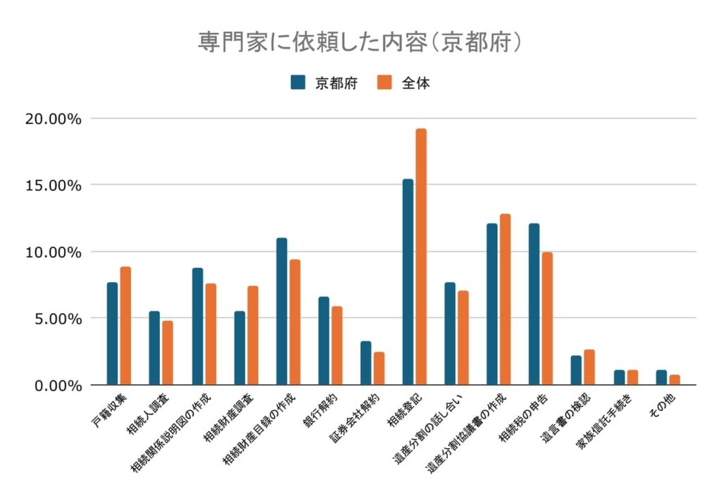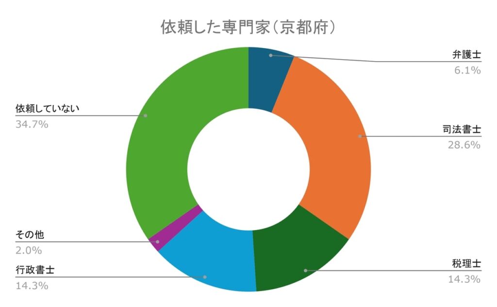 その一方、専門家に依頼していない割合は34.69%でした。したがって京都府の約65%が専門家に相続手続きを依頼したと言えます。