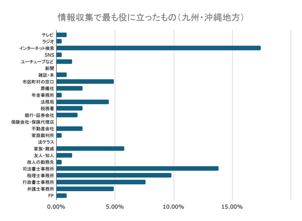 相続手続きに関する情報収集でもっとも役に立ったものとしては、インターネット検索が最も多く17.41%でした。