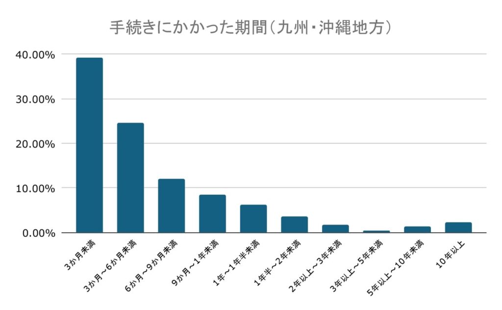 5年以上~10年未満が1.34%、10年以上が2.23%と、5年以上手続きがかかる場合はまれです。