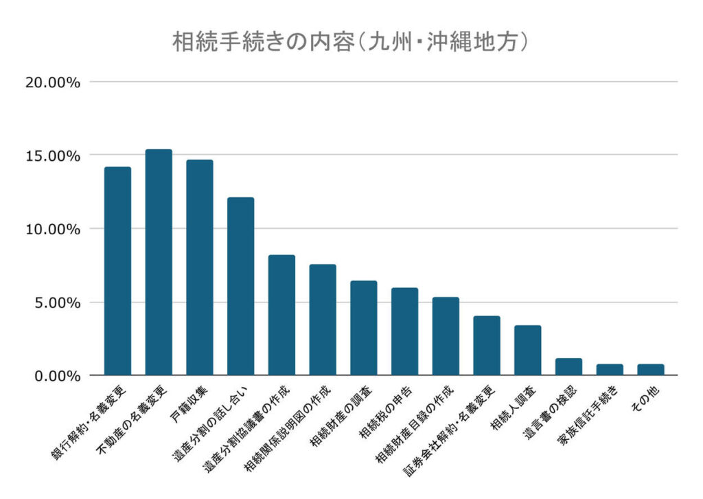 本アンケートでは、相続手続きを経験した人に、具体的な手続き内容や大変だったことなどを尋ねました。この記事では特に九州・沖縄地方(福岡県、熊本県、佐賀県、長崎県、大分県、宮崎県、鹿児島県、沖縄県)にお住まいで相続手続きをおこなった方についてピックアップしています。
