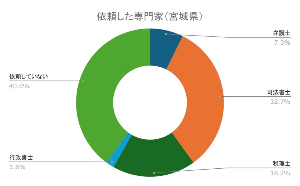 その一方、専門家に依頼していない割合は40.00%でした。半分以上は相続手続きを専門家に依頼したということになり、これから手続きを迷っている人は一度相談してみることをおすすめします。