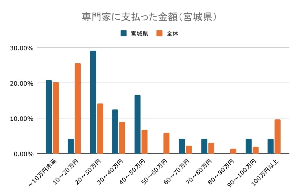 全体と比較すると、宮城県に住む人の相続は20万円以上~30万円以上がかなり多いとわかりました。