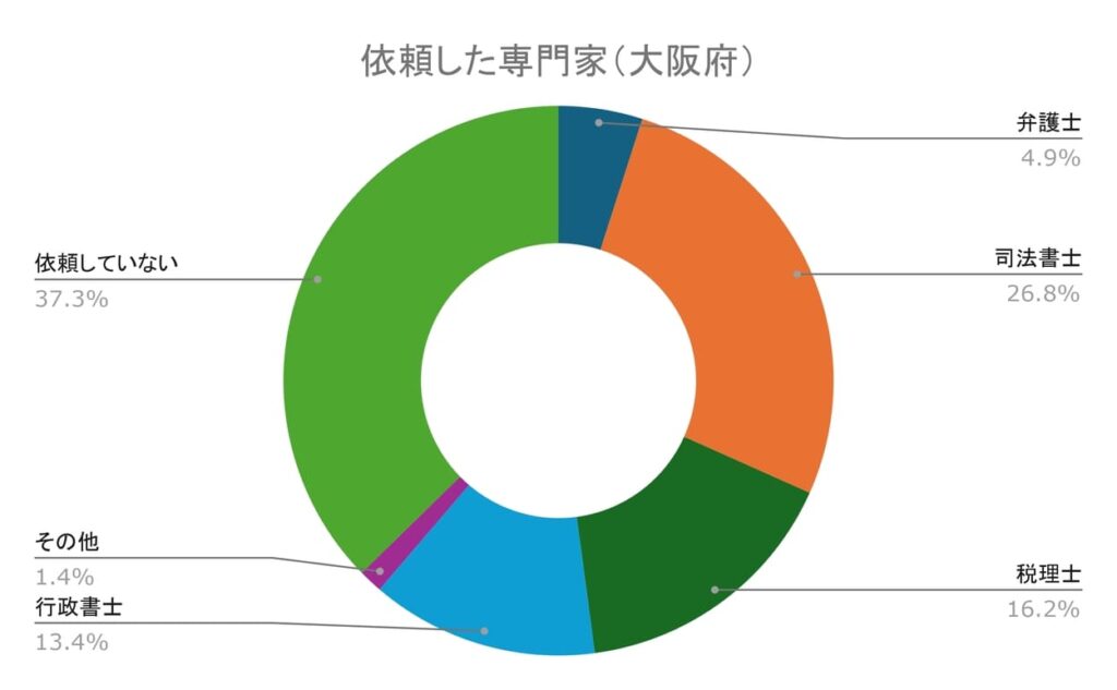 その一方、専門家に依頼していない割合は37.32%でした。したがって大阪府の6割程が専門家に相続手続きを依頼したと言えます。