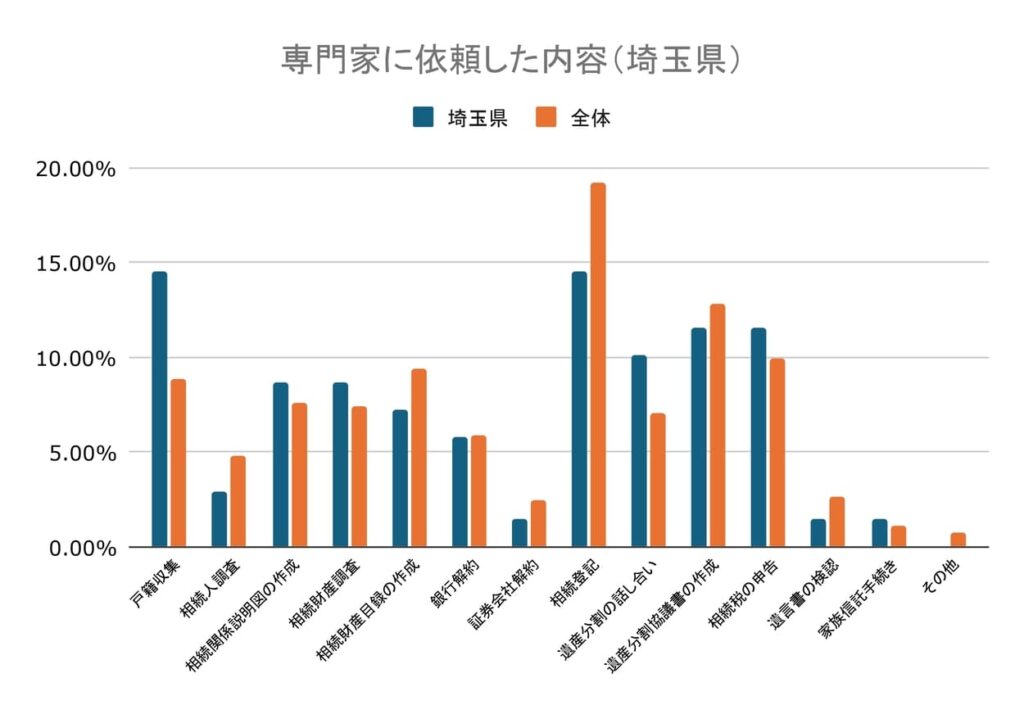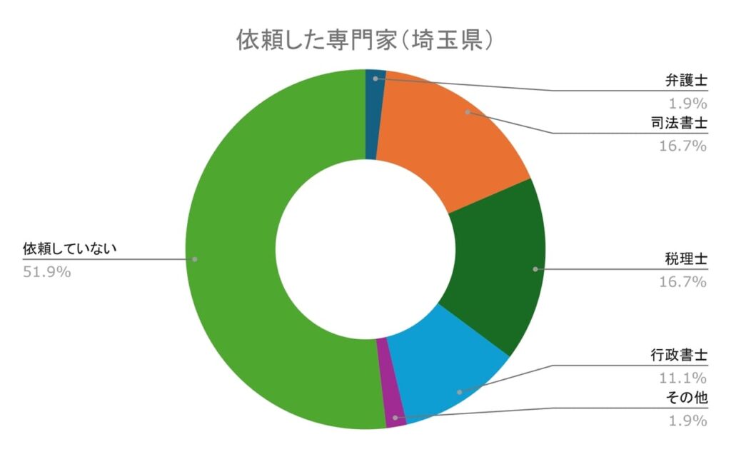 その一方、専門家に依頼していない割合は51.85%でした。したがって埼玉県の半分程が専門家に相続手続きを依頼したと言えます。