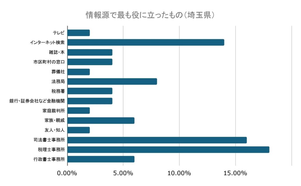 埼玉県に住む人の相続は税理士事務所が情報源で最も役に立ったと言い、相続税申告の情報が欲しかったことがわかります。