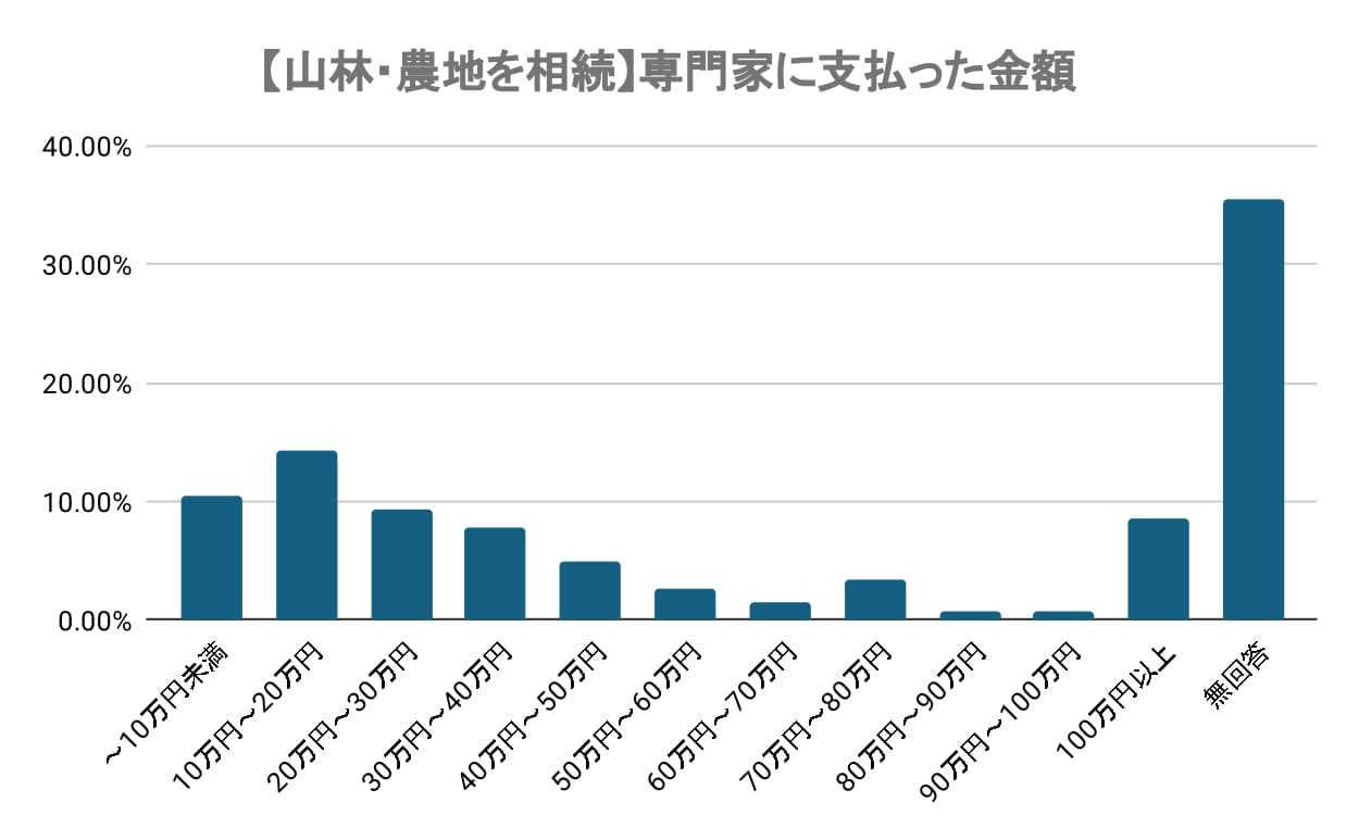 一方で、「100万円以上」と回答した人も8.61%おり、手続きが複雑だったり、専門家の対応が多岐にわたった可能性のあるケースでは、高額な費用が発生していることも読み取れます。