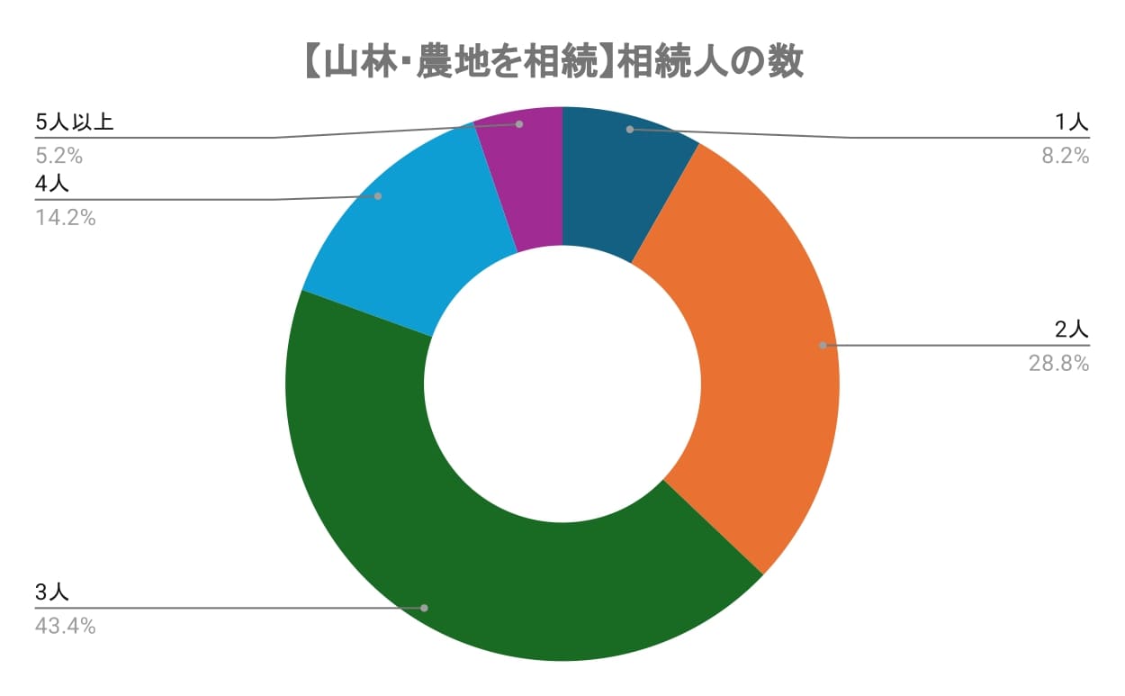 本調査では、山林・農地の相続では2〜3人の相続人で財産を分け合う形が主流であることがわかりました。