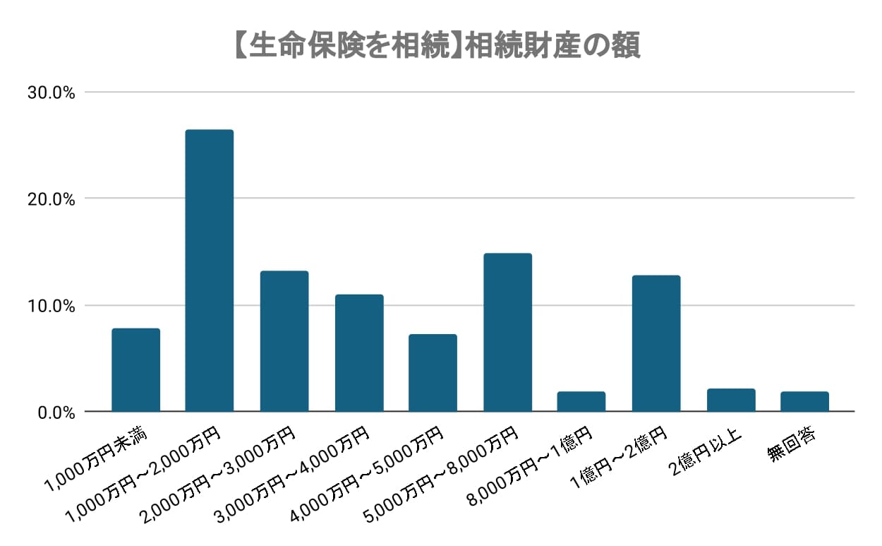 - 生命保険の相続をした人の財産総額は1,000万~4,000万円が多数派