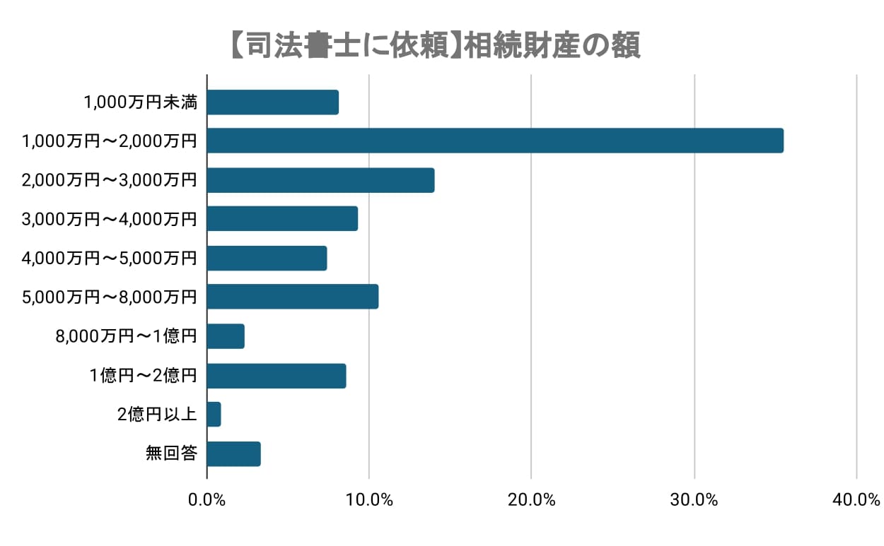 さらに「1億円~2億円」(8.6%)や「2億円以上」(0.9%)といった高額帯の相続も確認でき、中~高額層に加え、規模にかかわらず手続きの専門性を重視して司法書士に依頼するケースが幅広く存在していることが特徴です。