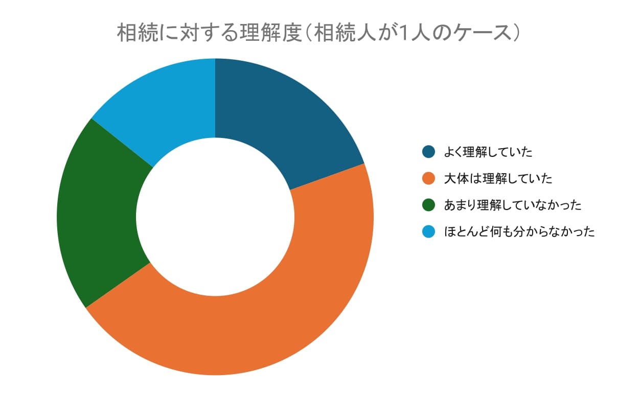 大体は理解していた(45.71%)との回答が最多で、基本的な知識は持っていたが詳細までは分からない人が多いことがうかがえます。あまり理解していなかった(20.48%)、ほとんど何も分からなかった(14.29%)と約3人に1人が相続についてほぼ知らない状態だったことがわかりました。相続は頻繁に経験するものではなく、事前に学ぶ機会が少ないため、手続き時に戸惑う人が多いと考えられます。