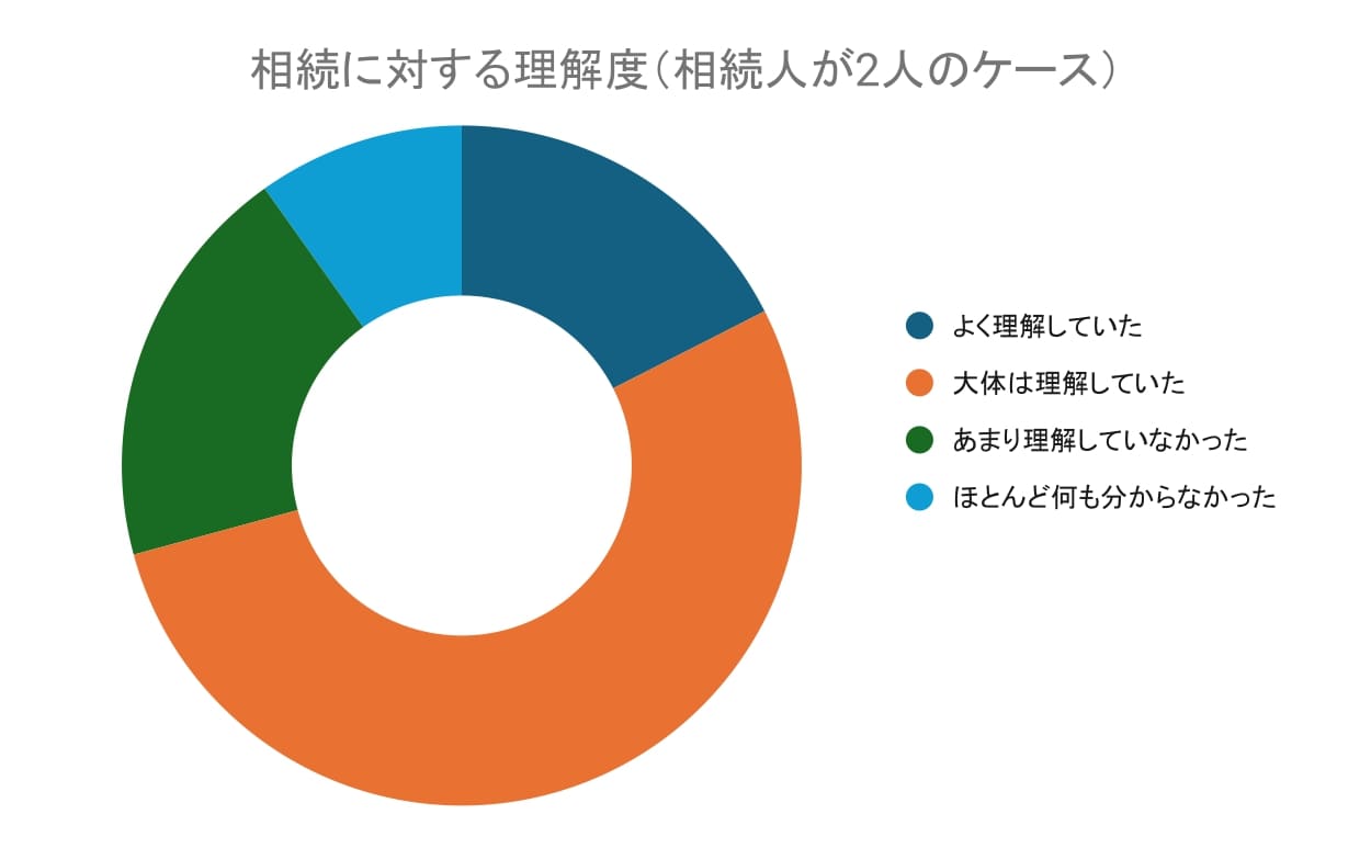 大体は理解していた(53.28%)との回答が最多で、基本的な知識は持っていたが詳細までは分からない人が多いことがうかがえます。あまり理解していなかった(19.38%)、ほとんど何も分からなかった(9.84%)と約3割が相続についてほぼ知らない状態だったことがわかりました。相続は頻繁に経験するものではなく、事前に学ぶ機会が少ないため、手続き時に戸惑う人が多いと考えられます。