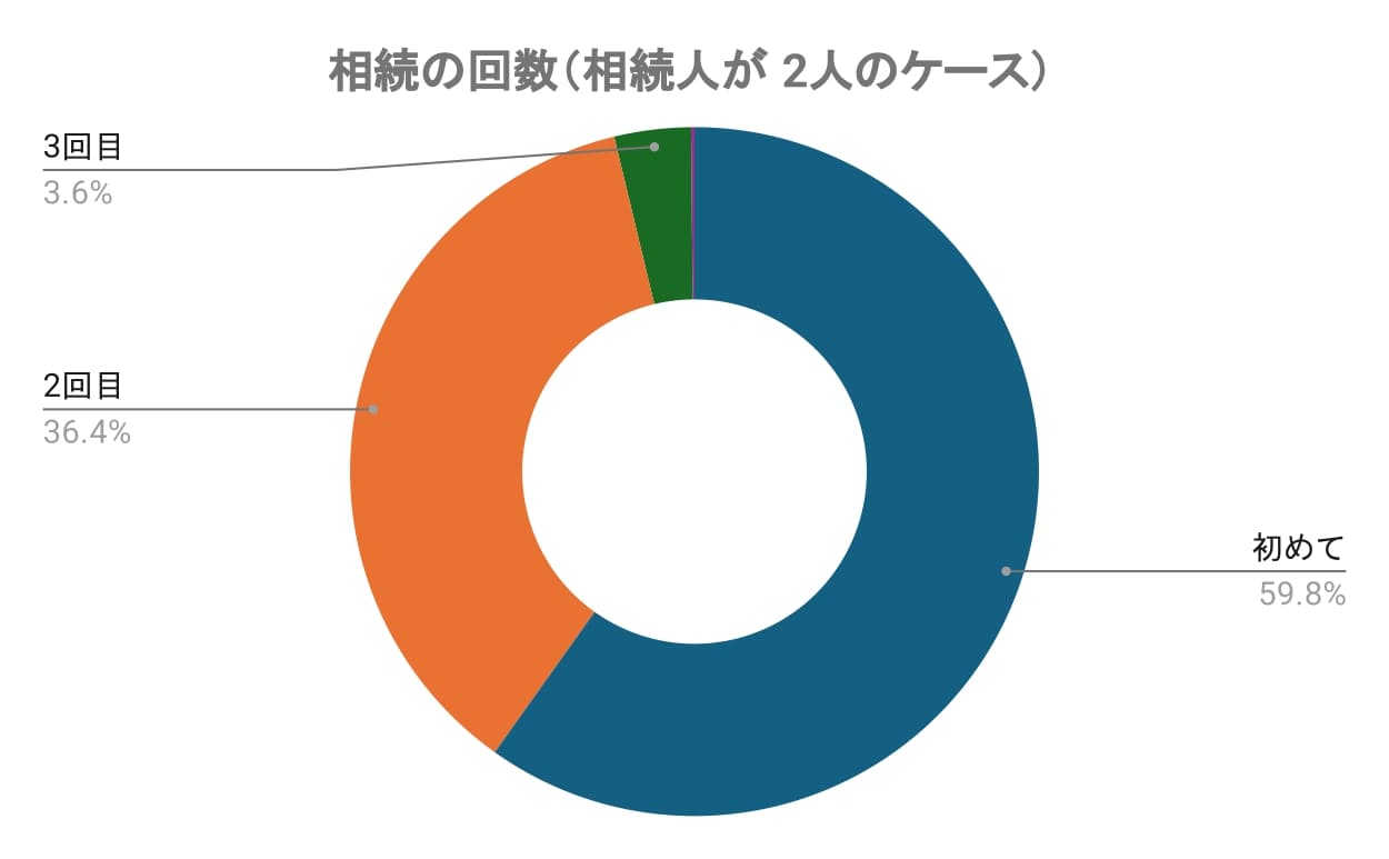 初めての相続が全体の約6割を占め、ほとんどの人にとって相続は初めての経験であることがわかります。2回目(36.41%)、3回目(3.59%)、5回目以上(0.16%)と、3回目以上の相続経験者はごく少数であり、このことから、相続は一生のうちに数回しか経験しない出来事であることを反映しています。