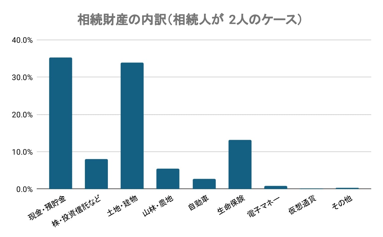 相続人が2人のケースの相続人の相続財産の額と種類
