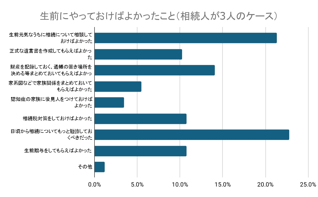 - 相続の知識不足を後悔する人が多く、生前の相談や財産整理が重要。