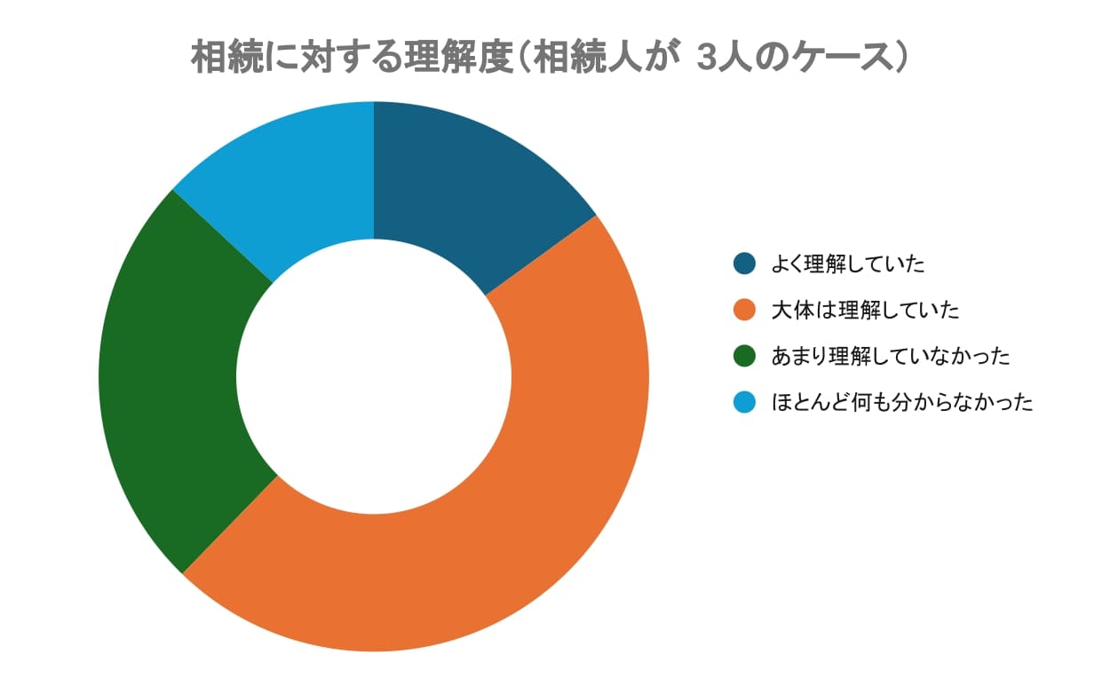 大体は理解していた(47.25%)との回答が最多で、基本的な知識は持っていたが詳細までは分からない人が多いことがうかがえます。あまり理解していなかった(24.67%)、ほとんど何も分からなかった(13.08%)と約4割が相続についてほぼ知らない状態だったことがわかりました。相続は頻繁に経験するものではなく、事前に学ぶ機会が少ないため、手続き時に戸惑う人が多いと考えられます。