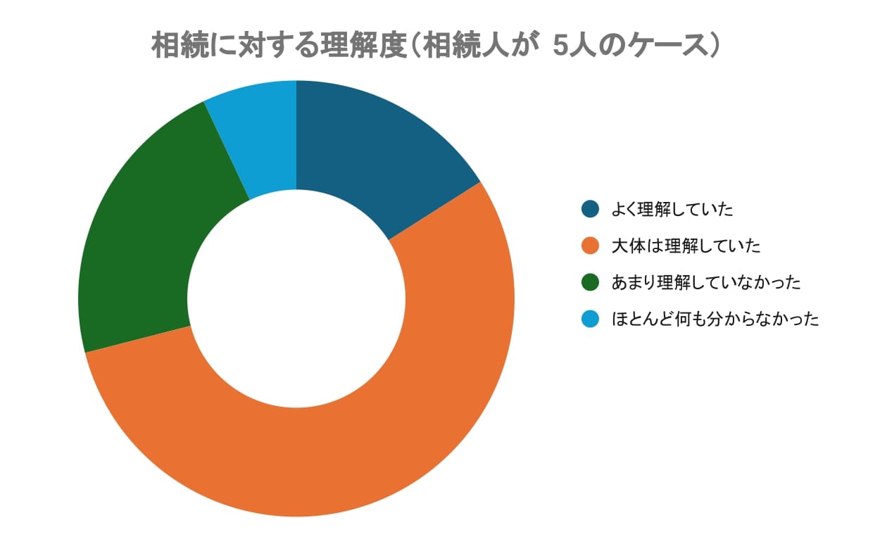 大体は理解していた(55.00%)との回答が最多で、基本的な知識は持っていたが詳細までは分からない人が多いことがうかがえます。あまり理解していなかった(22.00%)、ほとんど何も分からなかった(7.00%)と約3割が相続についてほぼ知らない状態だったことがわかりました。