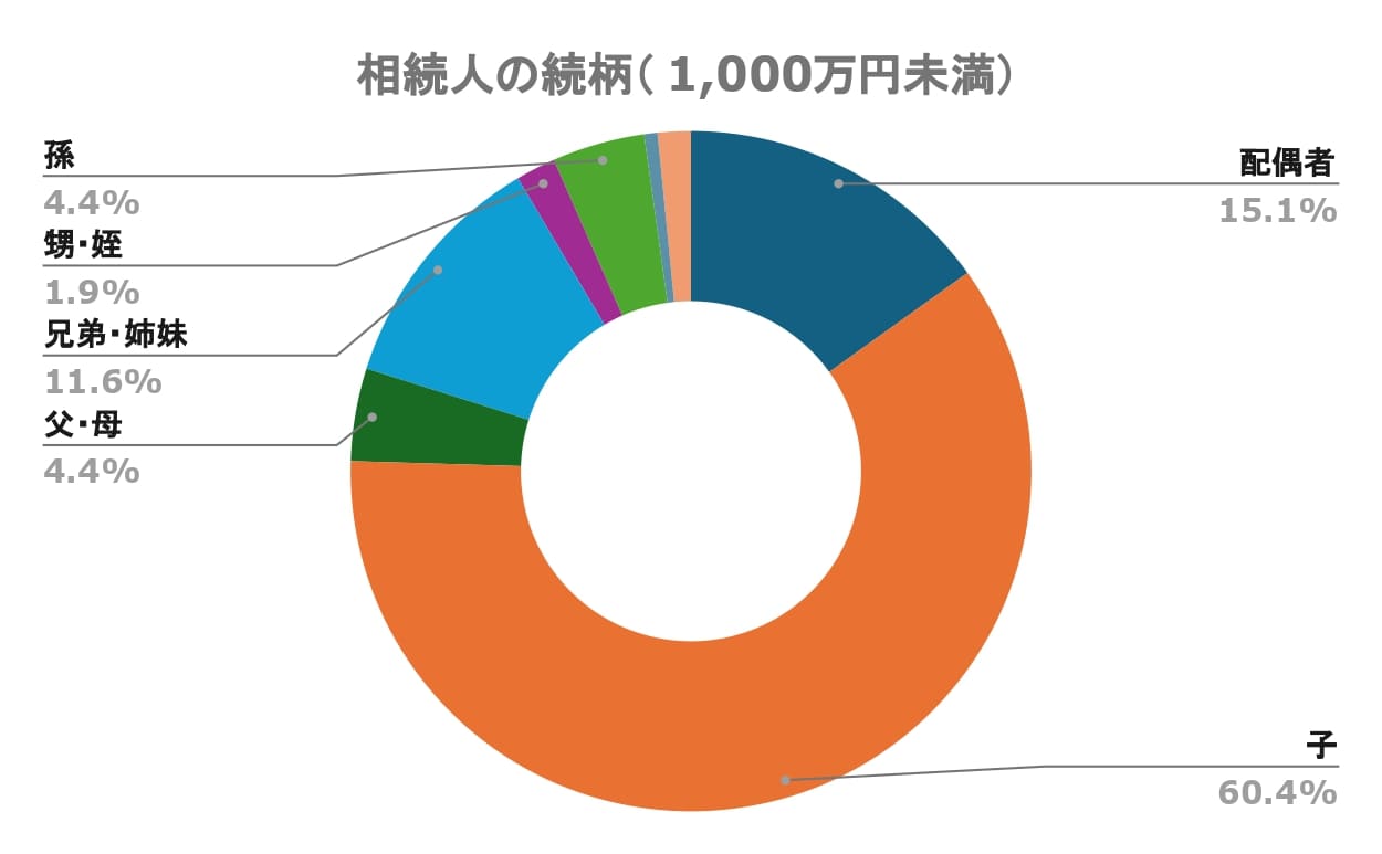 相続財産1,000万円未満の場合の相続人の数と続柄
