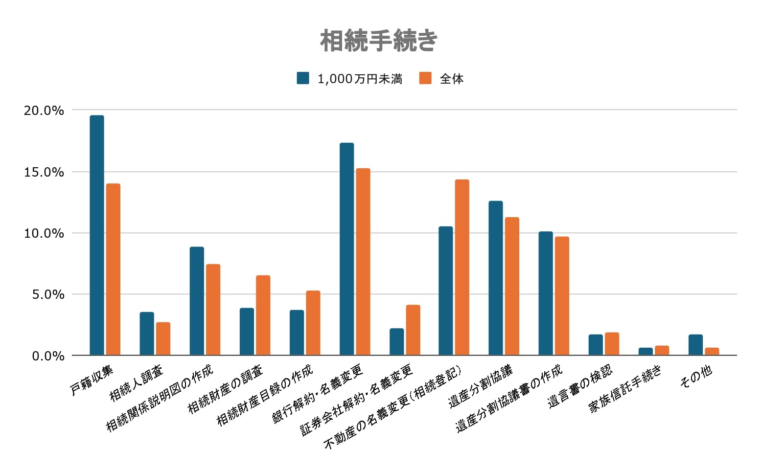 預貯金の解約、戸籍収集、不動産の名義変更が全体の半分を占めました。