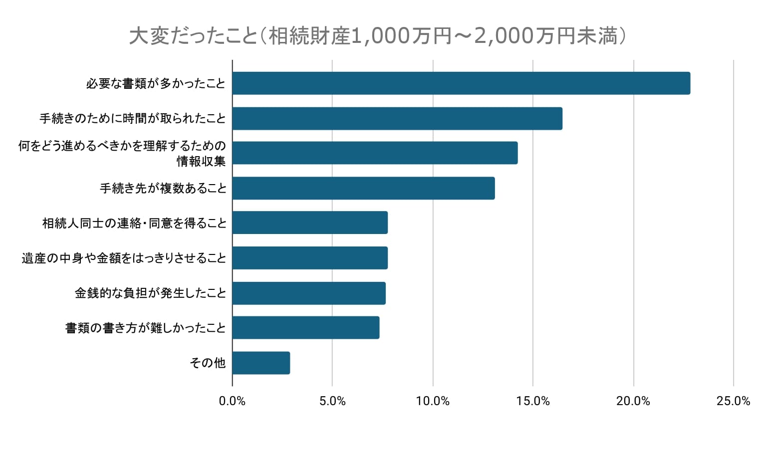 相続財産1,000万円~2,000万円未満の場合の手続きで大変だったこと
