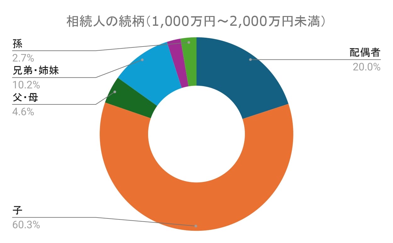 相続財産1,000万円~2,000万円未満の場合の相続人の数と続柄