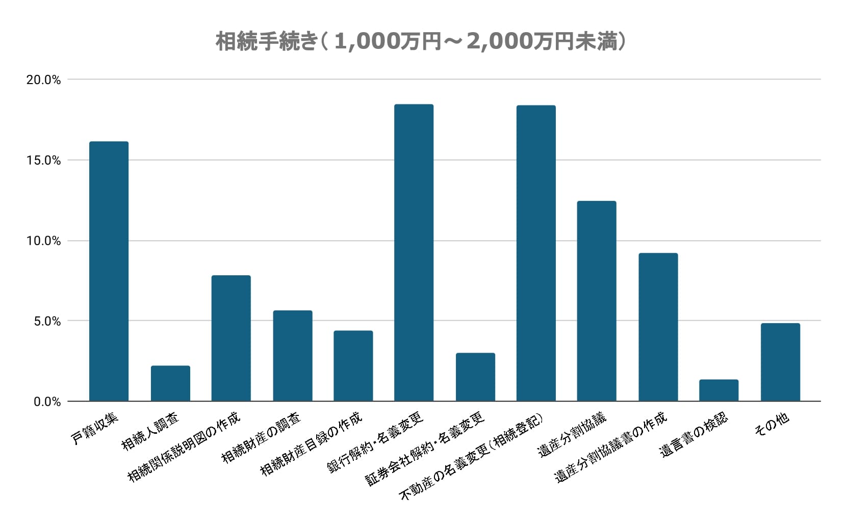 相続手続きの中でもよくおこなわれる銀行解約・名義変更(18.5%)、不動産の名義変更(18.4%)、戸籍収集(16.1%)が上位を占めました。