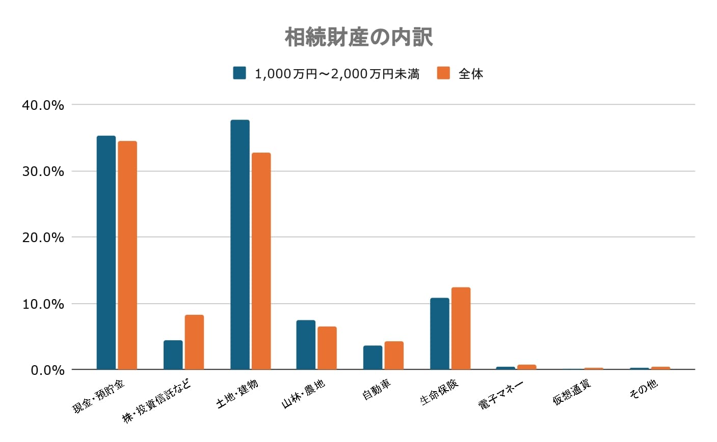 相続財産1,000万円~2,000万円未満の場合の遺産内訳