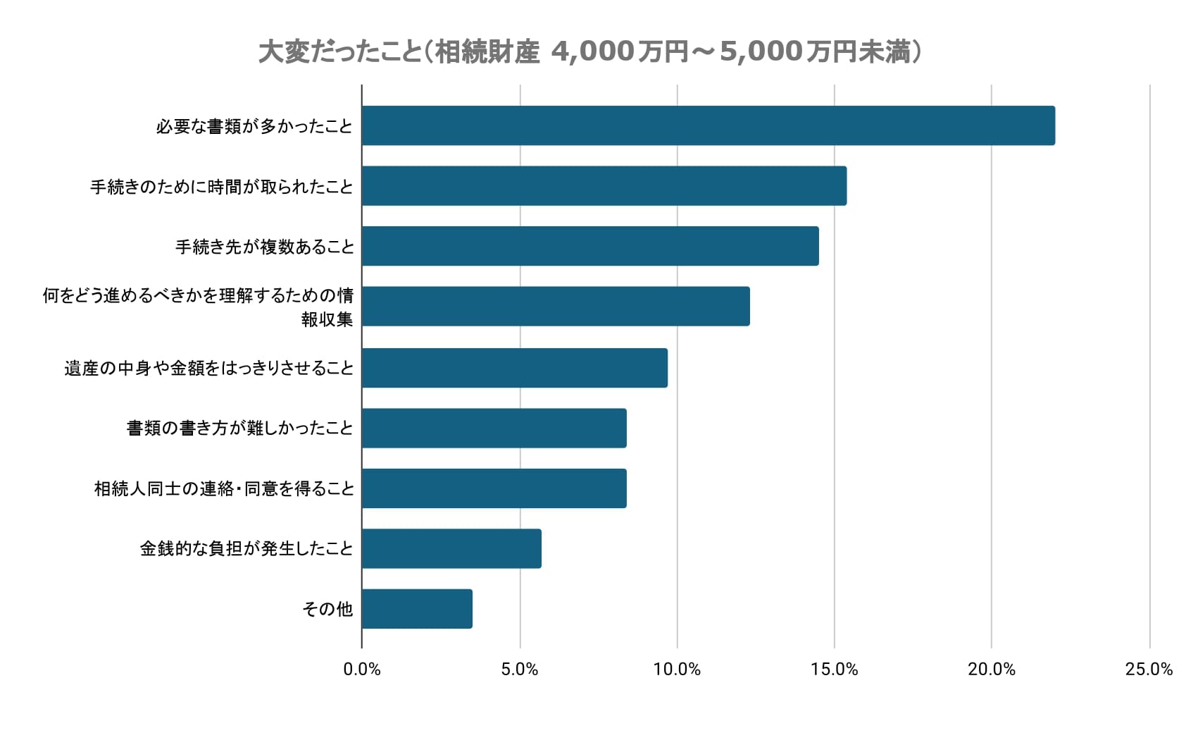 相続財産4,000万円~5,000万円未満の場合の手続きで大変だったこと