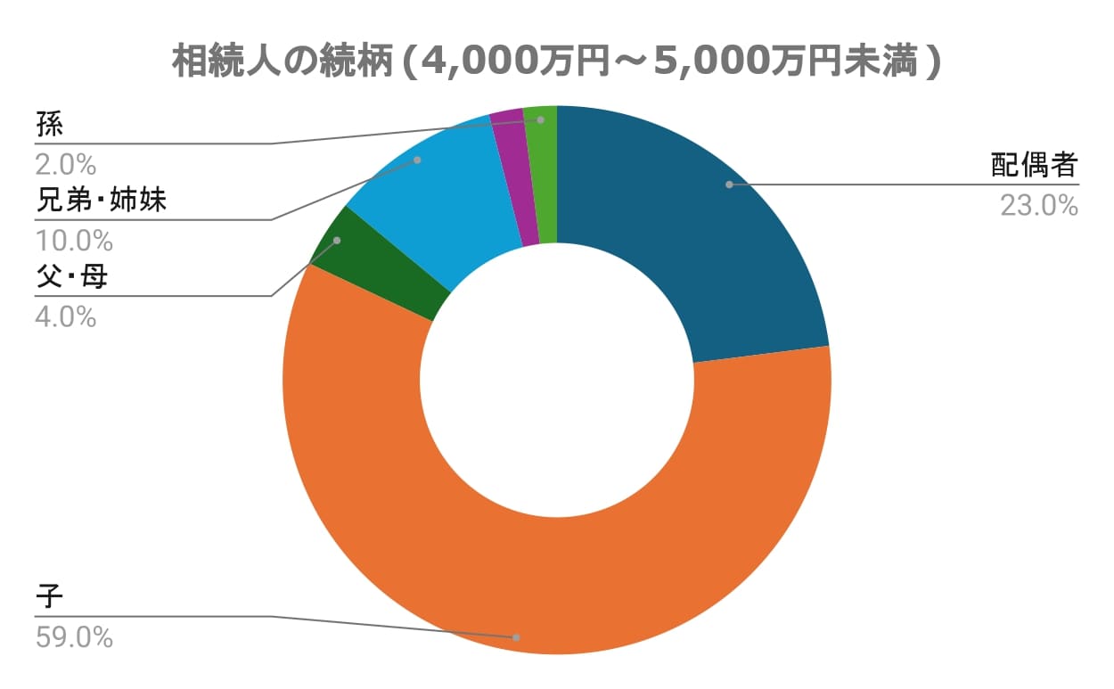相続財産4,000万円~5,000万円未満の場合の相続人の数と続柄