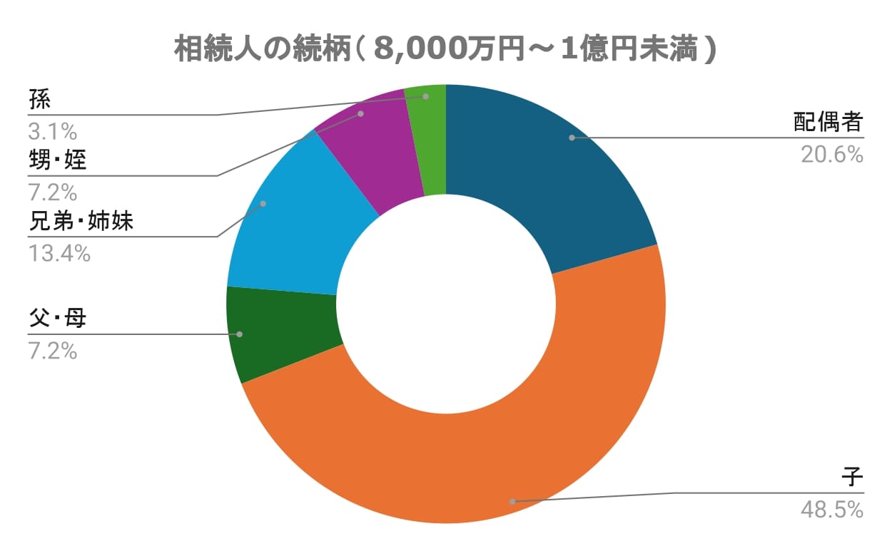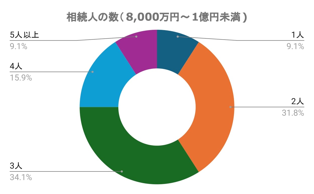 相続財産8,000万円~1億円の場合の相続人の数と続柄