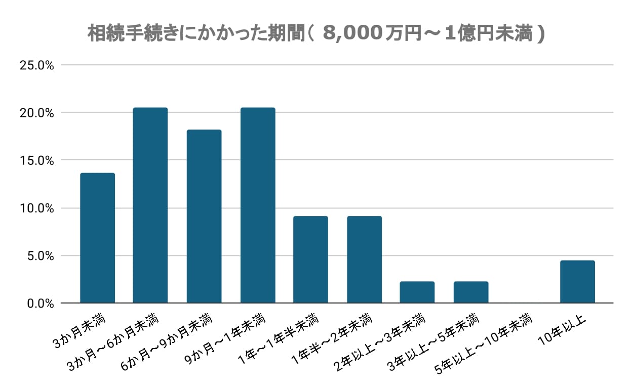 相続財産8,000万円~1億円の場合の相続手続きに要した期間